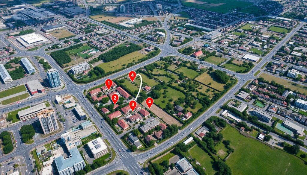 בחירת האתר הנכון היא מפתח להצלחה בנדל"ן. בחירת אתר אסטרטגי כוללת ניתוח מעמיק של המיקום. הניתוח הזה משפיע על גורמי הצלחת הפרויקט, כמו יכולת הקיום והקיימות.